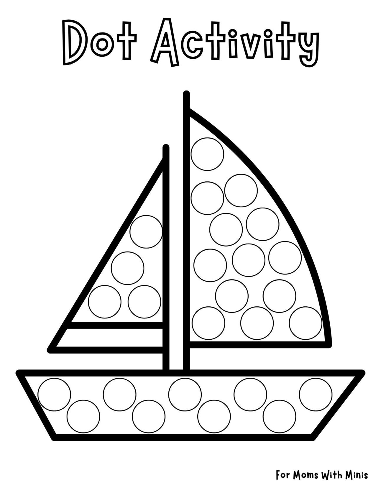 This dot activity lets kids fill in the sailboat with colorful dot markers or stickers. It’s a simple yet engaging way to strengthen fine motor skills and hand control. Whether using a dauber or coloring inside the dots, little learners will enjoy making their sailboat look bright and fun. A perfect quiet-time activity!