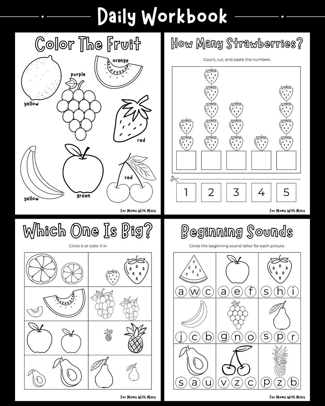 In my newsletter, For Moms With Minis, I share free activity printables designed for kids aged 2-5. These fun activities help little ones practice colors, numbers, letters, fine motor skills, and more. Don’t worry if your child can’t do everything just yet—each activity is designed with different levels of difficulty in mind. The key is to have fun, be patient, and enjoy the time spent together. Every bit of practice counts, and I’m here to support you along the way!