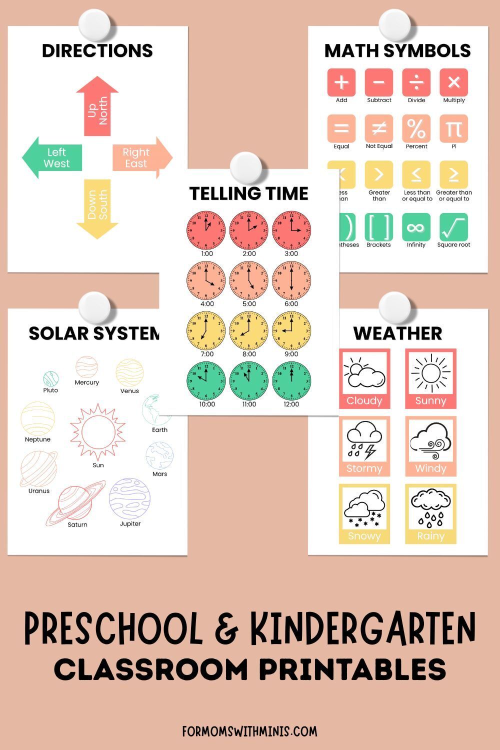 These printable posters are ideal for hanging on classroom walls, displaying in learning centers, or using as visual aids during lessons. Kids will love pointing out the daily weather, identifying planets in our solar system, or practicing telling time with bright clock visuals.
