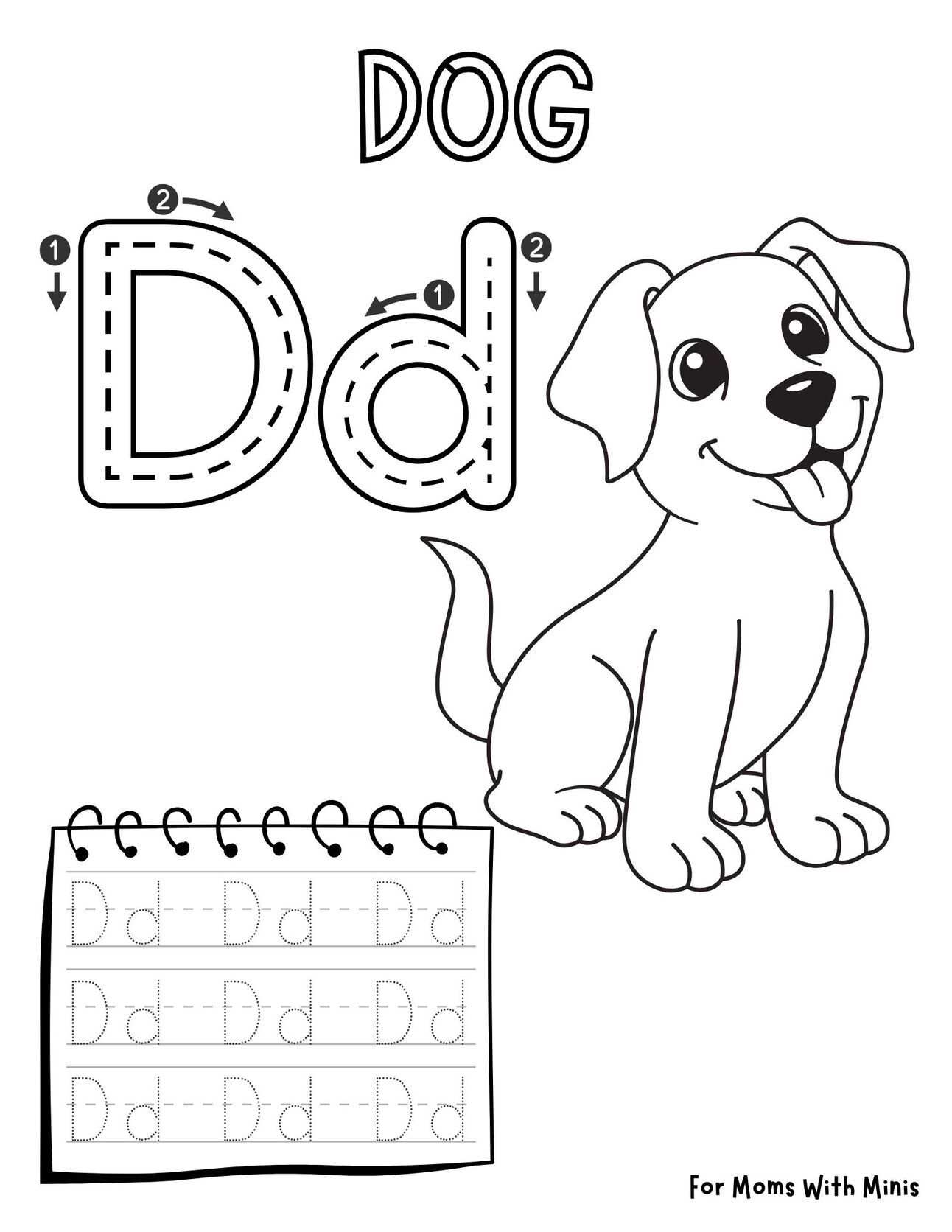 This page helps little learners get to know the letter D through tracing and a cute puppy illustration. Kids can trace both the uppercase and lowercase Dd, then write on their own in the guided box. It’s a great way to practice letter formation while connecting it to a familiar word—dog!